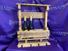 A handcrafted wine rack and a $25 towards your favorite wine.