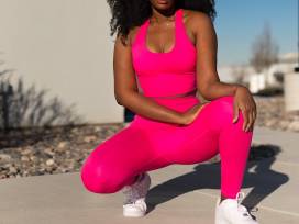 Whether you're inside the gym, running errands, or going out with friends, feel confident in every part of your life with this Gold Elite "Pretty in Pink" set. Size can be chosen upon purchase.