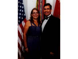 Worn and donated by Leah Esper, businesswoman and philanthropist - Former Memphis State University golfer, Esper is the Executive Director of Design-Build Institute of America - Mid Atlantic region, a non-profit organization that promotes the use of Design build. United Service Organization volunteer and serves on the USO service council. Spent many years as a community leader, coaching various sports, Boy Scout den leader, former Sangster Elementary PTA president, former Lake Braddock Secondary School Athletic Boosters president and former president of the Cottontail Swim and Racquet Club.