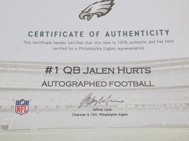 Jalen Hurts (Philadelphia Eagles #1) Autographed Philadelphia Eagles Football with Certificate of Authenticity