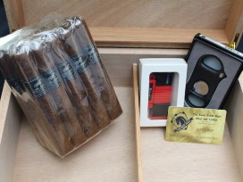 Black Horse Cigar Package includes: Golf Humidor, Package of Twenty (20) Black Horse Cigar Shop Cigars, $25 Gift Card to Black Horse Cigar Shop and Lounge, Palio Cigar Cutter, JetLine Cigar Lighter