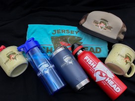Fish Head Medium Tshirt, Two (2) Fish Head Mugs, One (1) Fish Head Yeti Tumblr, One (1) Fishhead Jug, One (1) 20 oz. Tunra Water Bottle, One Fish HeadHat