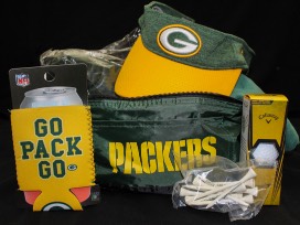 Green Bay Golf Package Includes: Green Bay Golf Tees, Green Bay Koozie, Green Bay NFL Visor, Green Bay Golf Towel, Green Bay Blade Putter Cover and a Green Bay Lunch Box