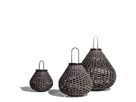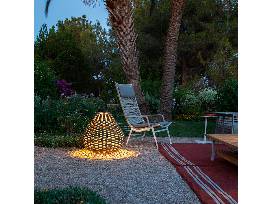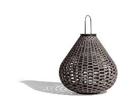 Powder coated aluminum frame with woven polypropylene cord. Powder coated stainless steel handle height 7 1/2 inches (19cm). 8w 2700k led board. Touch on-off control. Usb charging. Power supply included. Ip 45. Lithium-ion batteries. Battery life: 6 hours. Without handle height is 24 3/4 inches
