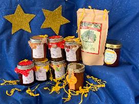 Sounds like a rock band! This basket include an assortment of jams from The Jam Farm in Ludington, MI and a cherry scone mix from Cherry Republic. Let the good times roll!