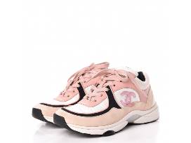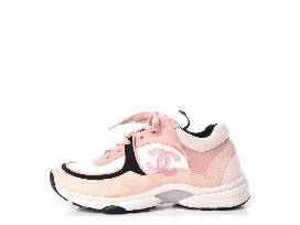 These stylish sneakers, size 39, are crafted of pink suede and calfskin leather in pink with accents of black. These shoes are adorned with a Chanel CC on the outside. These are designed with high-performance rubber construction for athletic wear and the timeless quality and style of Chanel!