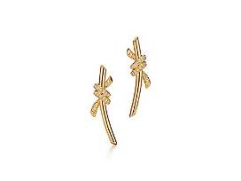 The Tiffany Knot collection is a complex feat of craftsmanship. The earrings and necklace are crafted with 18K yellow gold and pave diamonds, then polished by hand for high shine.