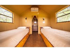 The Foothills Safari Camp is located a half-mile further inside Fossil Rim down a gravel road from The Lodge. The two-acre camp is secured by fencing and overlooks one of Fossil Rim's most popular wildlife watering holes where an ever-changing array of animals - both exotic and native - can be observed.
