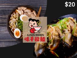 - One (1) $20 Gift Certificate to Ajisen Ramen. Not redeemable for cash or credit. Not valid without authorized signature. Redeemable only in Southern California Locations. Not responsible if lost or stolen. http://www.ajisencalifornia.com/