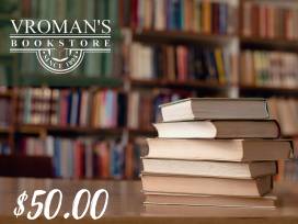 - $50 gift card to any Vroman's Bookstore and Book Soup location. https://www.vromansbookstore.com/