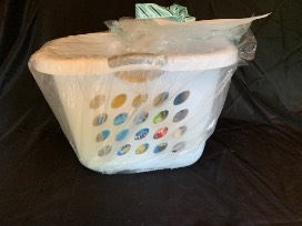 Laundry basket with Tide detergent; Shout stain remover; Fabric Softener; Hamilton Beach Iron; Hand Soap; Hand Sanitizer; Spray Bottle; Scrub Brushes; Lint remover brush