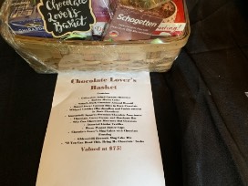 Ghirardelli Salted Caramel Brownies; Kahlua Mocha Coffee; Nonni's Dark Chocolate Almond Biscotti; Russel Stover Coconut bites in dark chocolate; Whippet Cookies - Marshmallow and Cookie covered in dark chocolate; Ghirardelli Squares Premium Chocolate Assortment; Chocolate, Cocoa Cream and Hazelnuts bar; Silly Cow Chocolate Moo-usee hot chocolate; assorted Lindor Truffles; Reese's Peanut Butter Cups; Chocolate Lover's mug cakes with chocolate frosting; Ghirardelli Brownie Mug Cake mix; If you can read this bring me chocolate socks