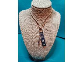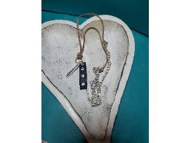 Navy blue 100% leather tag with white rhinestone accents. Tag stamped SOLIDARITY. Silver chain with tan leather cord. Handcrafted. Lobster claw clasp.