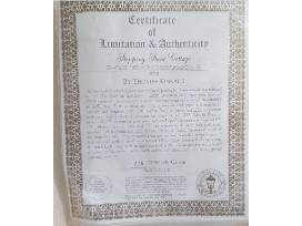 This piece is a certified, numbered 18" X 24" canvas lithograph of "Stepping Stone Cottage" in a classic dark wood frame.