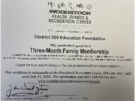 3 month family membership at Woodstock Rec Dept - Valid for 2 adults living in the same household and their children. Redeemable at the Woodstock Recreation Center. Valid until July 31, 2023