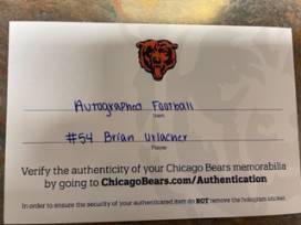 NFL Football with certificate/hologram sticker to verify authenticity of Chicago Bears memorabilia.