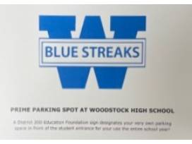 A District 2oo Education Foundation sign designates your very own parting space in front of the student entrance for your use the entire school year!