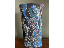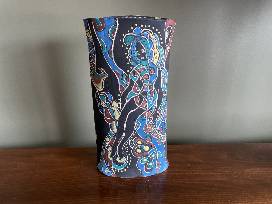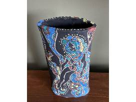 This beautiful handcrafted pottery can be yours! Handcrafted by Elaine Kadakia, the 9" X 5" one-of-a-kind vase will look beautiful in any home.