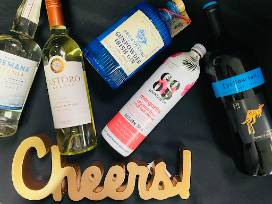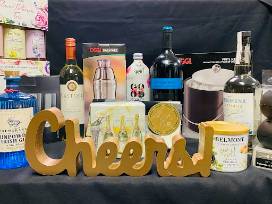 This basket has everything you need to build your bar from the tequila up! Package includes: Gunpowder Irish Gin, Blanco Teremana Small Batch Tequila, Yellowtail Cabernet-Merlot, Castro Cellars Sauvignon Blanc, GOOD Cocktail Company's delicious margarita and mojito mixers, OGGI Barware cocktail shaker and ice bucket, a trio of skinny syrups for mixing delicious drinks, a set of four cocktail glasses, two large ice-cube molds, bar towels, cocktail napkins and Belmont Virginia peanuts for snacking. Complete your newly (and robustly!) stocked bar with a "cheers" sign for display and inspiration.