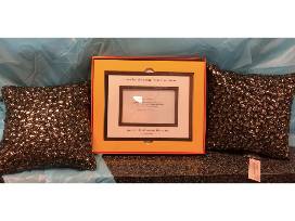 1Add a touch of sophisticated style to any room, with two limited edition copper beaded silk steel grey decorative pillows from designer Aviva Stanoff and glass and copper frame with inspirational message "Shoot for the Moon, But Even if You Miss You Will Land among the Stars" from Ben's Garden in Manhattan.
