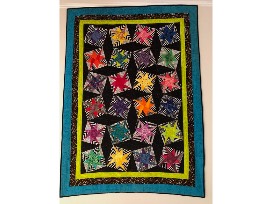 1Cherish this beautiful handmade Quilt, by a Rochester Quilter, circa 2000. Materials are cotton exterior and polyester batting; size is 56" X 78", and includes a rod pocket.