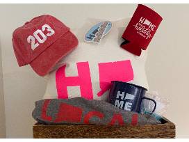 Get your Fairfield County spirit on with this package of The Two Oh Three apparel and merchandise! Basket includes a throw pillow, t-shirt (L), baseball cap and a coffee mug and cup.
