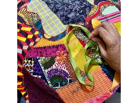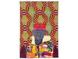Appliqued textiles on African Wax fabric with hand embroidery and beading