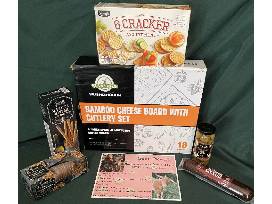 - Food (6 cracker asst, sea salt and olive breadsticks, raisin crisps, jalepeno olives)