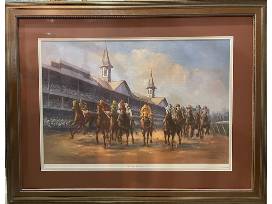 Signed and framed print of Tony Oswald's "100th Run For The Roses