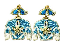 - These Jersey Silk earrings are hand beaded with seed beads and the attachment is to symbolize the rider's helmets, which are rhinestone embellished.