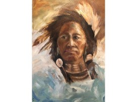 118"X24" Canvas Oil Chief Black Kethylene Portrait
