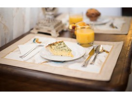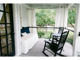 Blue Heron is the perfect place for guests who value privacy and like to do things at their own pace. It has two luxurious guest suites, each with a king size bed, private bath, dining area, refrigerator, microwave, coffee service, and essential oil diffuser. Each suite is accessed by its own private entrance from a large porch that overlooks the property's gardens. Guests can relax on their private porch area with rocking chairs, dining table and daybed, and outdoor curtains for additional privacy. There's even a fire pit in the garden for guests who wish to relax fireside. The daily continental breakfast consists of fresh pastries, English quiche, fresh fruit, and more. Breakfast is fully stocked in the room each afternoon so that guests can wake and dine at their leisure in the morning.