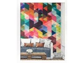 11 x 14" (16" x 20" framed in white fame) modern geometric wallpaper white sofa. Created on quality bristol paper with mixed media including markers, colored pencils, and watercolor.
