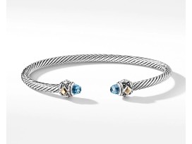 - Renaissance Sterling Silver Bracelet with Blue Topaz and 18K Gold