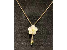 T83. This beautiful 14K gold, Na Hoku brand necklace is has a 16 inch chain. The pendant is a plumeria in mother of pearl.