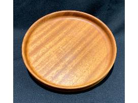 T88. Hand crafted by a SILCC Parishioner, this platter is made of mahogany. Platter dimensions are approximately 11 inches in diameter and with an overall height of 1-3/4 inches, and a one- inch lip around the perimeter. Food safe finish which can be renewed with mineral oil/beeswax or similar wood conditioner (think butcher block oil).