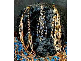 3 mixed multi stand Stone and Bead Necklaces with adjustable links.