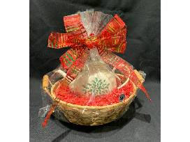 T90. This Lenox teapot has a poinsettia design and stands about 7 inches tall and 10 1/2 inches wide spout to handle.