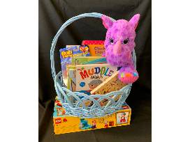 T8. Duplo 10513 Never Land Hideout (retired) Legos. Bob the Builder action figure, Chicka Chicka Boom Boom floor puzzle, Eric Carle matching game, Love and Kisses board book, Muddle and Match board book, Tiny Turtles board book, Skippyjon Jones color crazy board book, Skippyjon Jones Up & Down, Skippyjon Jones Sing-a-Long jigsaw puzzle book, and a stuffed purple rhinoceros.