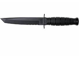 "The Tanto blade shape, of Asian influence, has a thick pointed blade that's rugged enough for the most difficult tasks. A partially serrated edge makes cutting looped and synthetic materials a breeze. Tang stamped USA. Leather sheath included. Made in the USA."