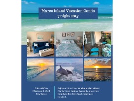 Enjoy an incredible 7-night stay at a 2-bedroom townhouse vacation condo on Marco Island. The Florida stay includes a beach pass, gift certificates to local Marco Island restaurants (includes two $25 gift cards to Deep Lagoon Seafood and one $25 gift card to CJ's on the Bay), and one 2-hour charter with BearFoot Charters.
