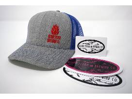 Show off your local craft beverage love with a Rising Storm Trucker Hat and stickers and 2 OSB glasses, pens, and stickers.
