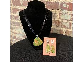 Beautiful green and gold jewelry set! A one-of-a-kind handmade clay jewelry. Each piece is unique, fun, and sassy. One of a kind, just like you! Smile when you see it, smile when you wear it!