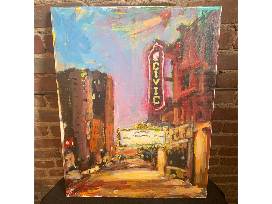 You could be the owner of this gorgeous, original painting of the Civic Marquee. (The office is sad to see this piece go!) Painted by artist Chuck Slonaker, who is based in Cuyahoga Falls.