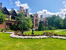 Enjoy a stroll in the gardens while sipping your wine! Stan Hywet created this beaitufl Wine Enthuiast gift basket! The items are housed in a laser-cut metal lantern, a Stan Hywet & Gardens travel wine glasses, a Stan Hywet shot glass, a Stan Hywet brass ornament, a sparkling wine pompete, and a family membership to Stan Hywet Hall & Gardens.