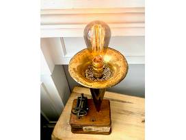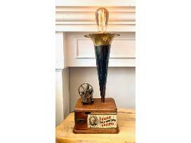 Vintage brass phonograph horn with original phone base and components with original Edison record label by Dina Rodgers