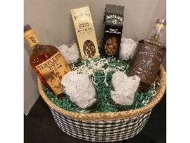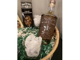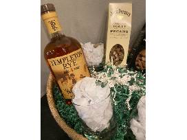 Whisky lovers, this is a basket for you! A bottle of Texas Silver Star Whiskey, a bottle of Templeton Rye, 4 whiskey glasses, and 2 packages of tasty pecans!