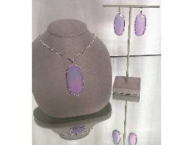 Ready to shine in your favorite statement styles? Kendra Scott jewelry is thoughtfully crafted in their Austin, Texas studio, pushing the boundaries of design and innovation while staying true to their principles: color, shape, material, and value. This set includes a Faceted Reid Long Pendant Necklace and the Faceted Elle Drop Earrings both in matte iridescent lilac glass set in Silver.