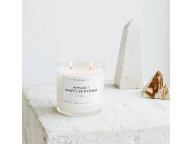 The Apples + Maple Bourbon candle is infused with cinnamon leaf, tangerine, and mandarin orange essential oils. It is perfect for any cold winter's day with notes of brown sugar, maple syrup, baked apples, and bourbon.