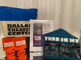 Also included are: Dallas Theater Center branded tote bags, DTC t-shirts, and koozies.